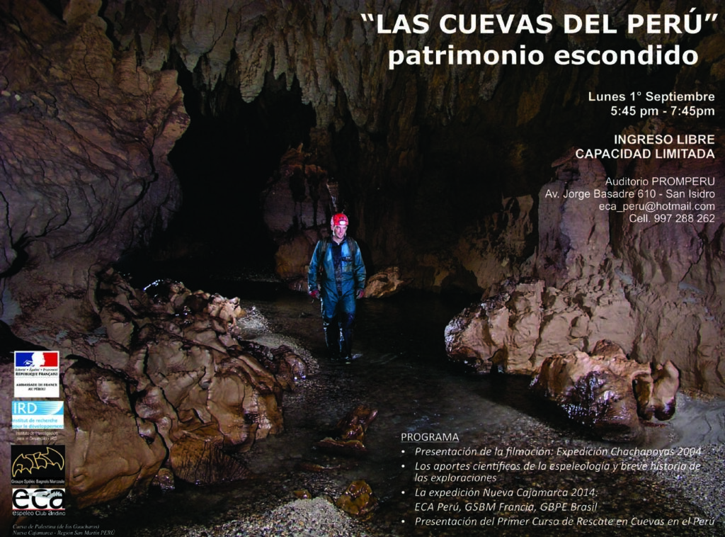 Pérou, Publication Conferencia PROMPERU, Lima (09/2014) 01/09/2014 @gsbm Guyot J.L. (2014). Las cuevas del Perú, patrimonio escondido. Conferencia PROMPERU, 09/2014, Lima (Pérou). [lien]