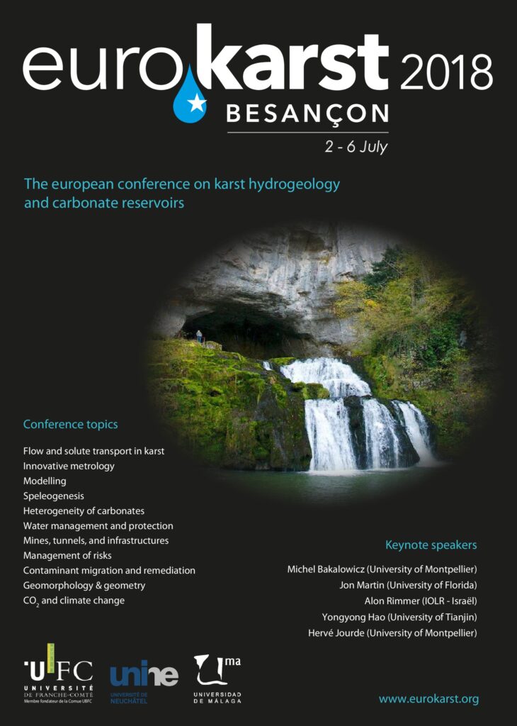 Hidalgo L., Batiot Guilhe C., Guyot J.L., Apaestegui J., Jourde H., Mazzilli N., Moquet J.S., Santini W., Sifeddine A. (2018). Rôle d’un karst andin tropical (Alto Mayo, Pérou) dans la dynamique de production de matériel dissous vers l’Amazone – Analyse du fonctionnement hydrogéologique et des flux associés. EuroKarst 2018, 07/2018, Besançon (France). [lien]