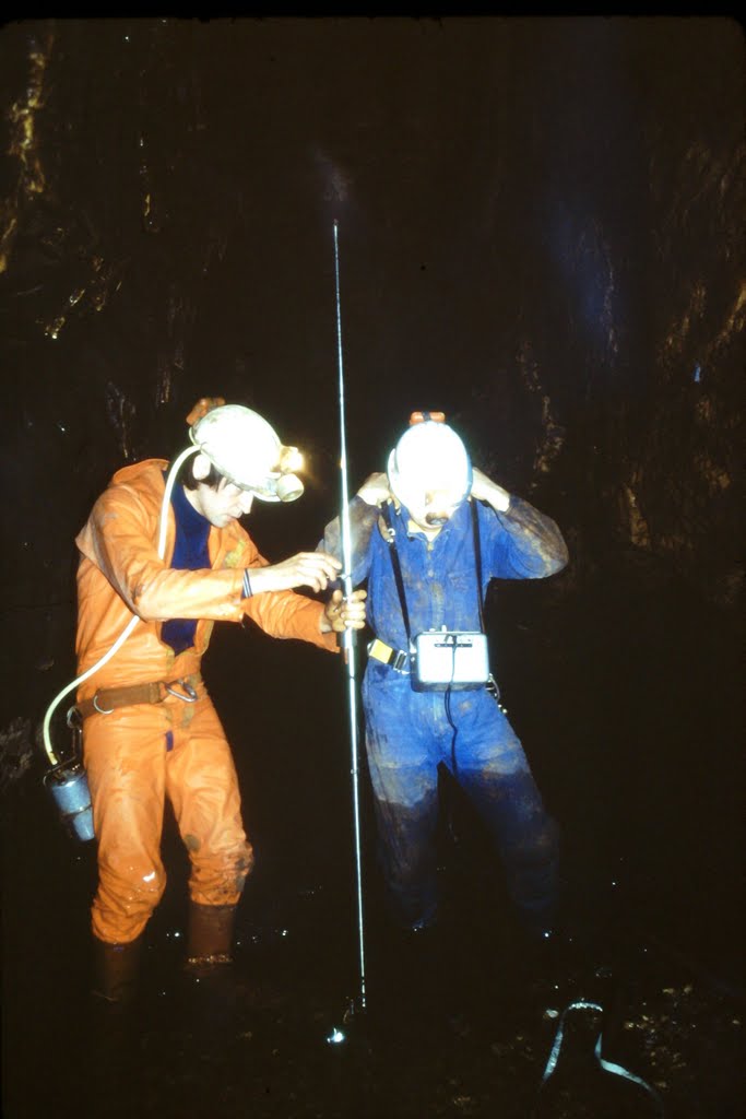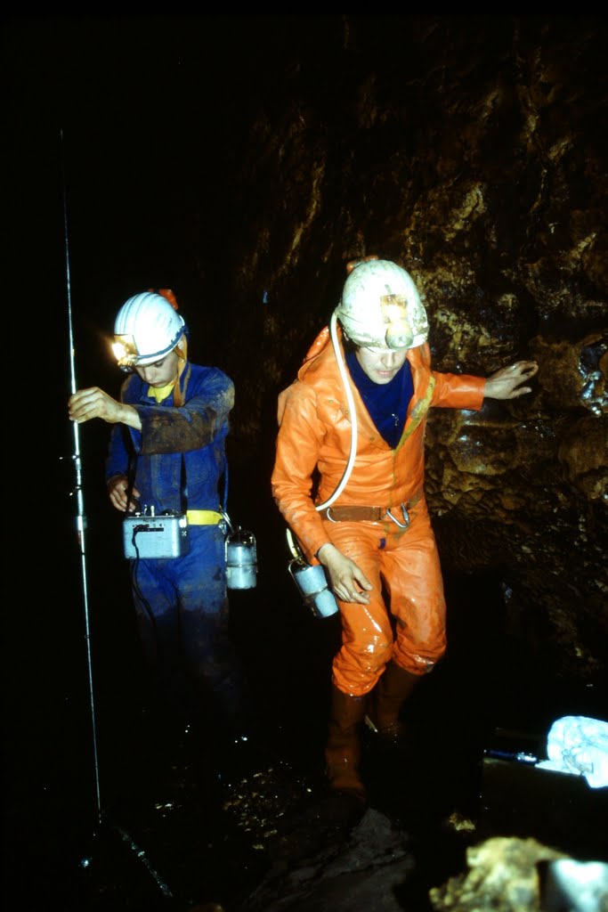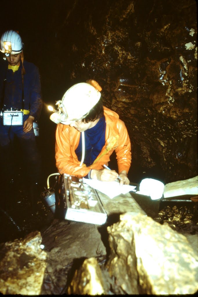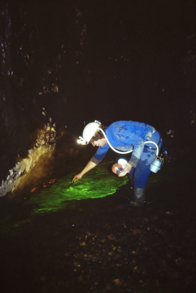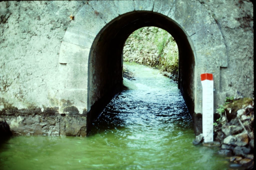 France, Hydrogéologie, Photos, Traçage Martinez A. & Martinez E. (05/04/1981). Coloration Paillère – Moulin à Montclus. Album Photos GSBM 05/04/1981 @gsbm