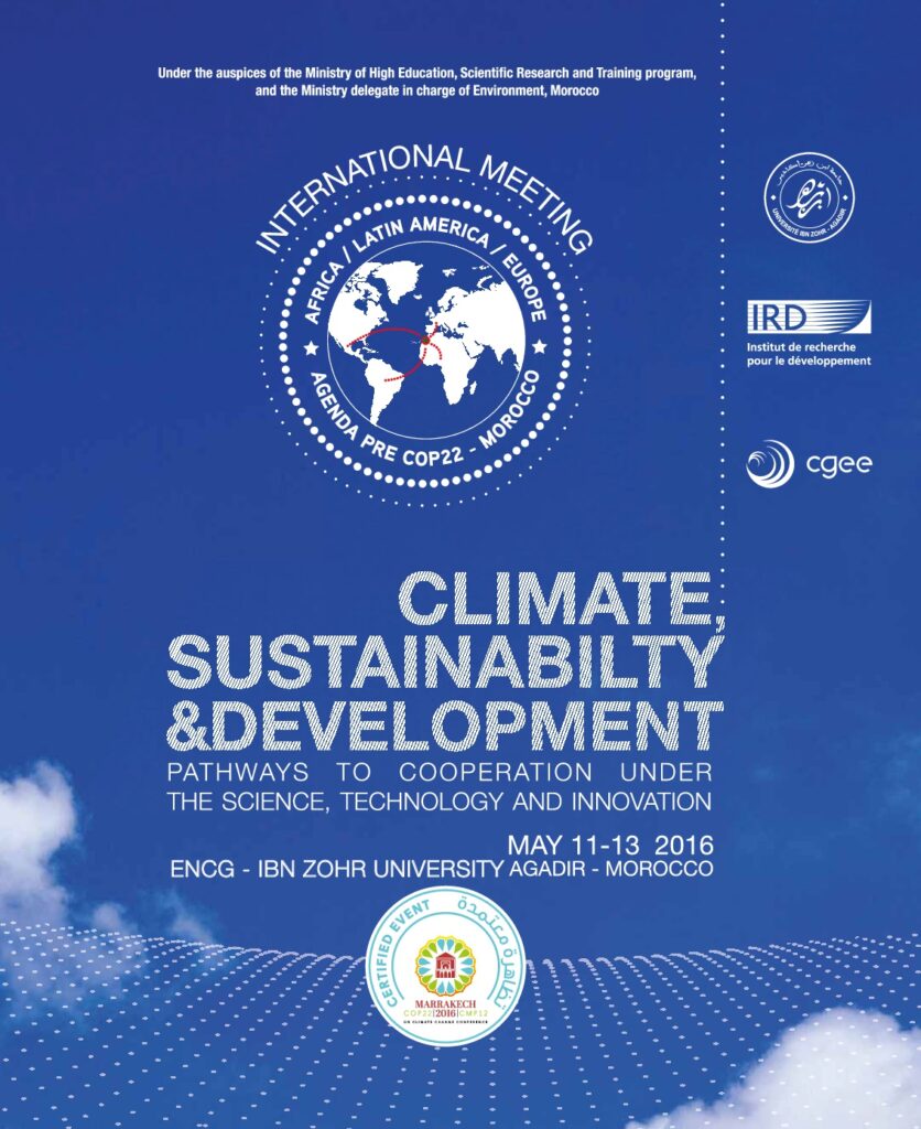 Bouchaou L., Ait Brahim Y., Sifeddine A., Guyot J.L., Apaéstegui J., da Cruz F. (2016). Karst aquifers in Morocco: Interest and prospects for climate change and water resources. 1ro Simposio internacional del Carst en Perú. 09/2016, Tarapoto (Pérou). [lien]
