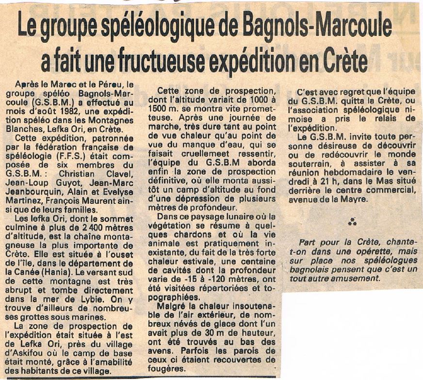Rapport GSBM, Crête 82 (Grèce)
